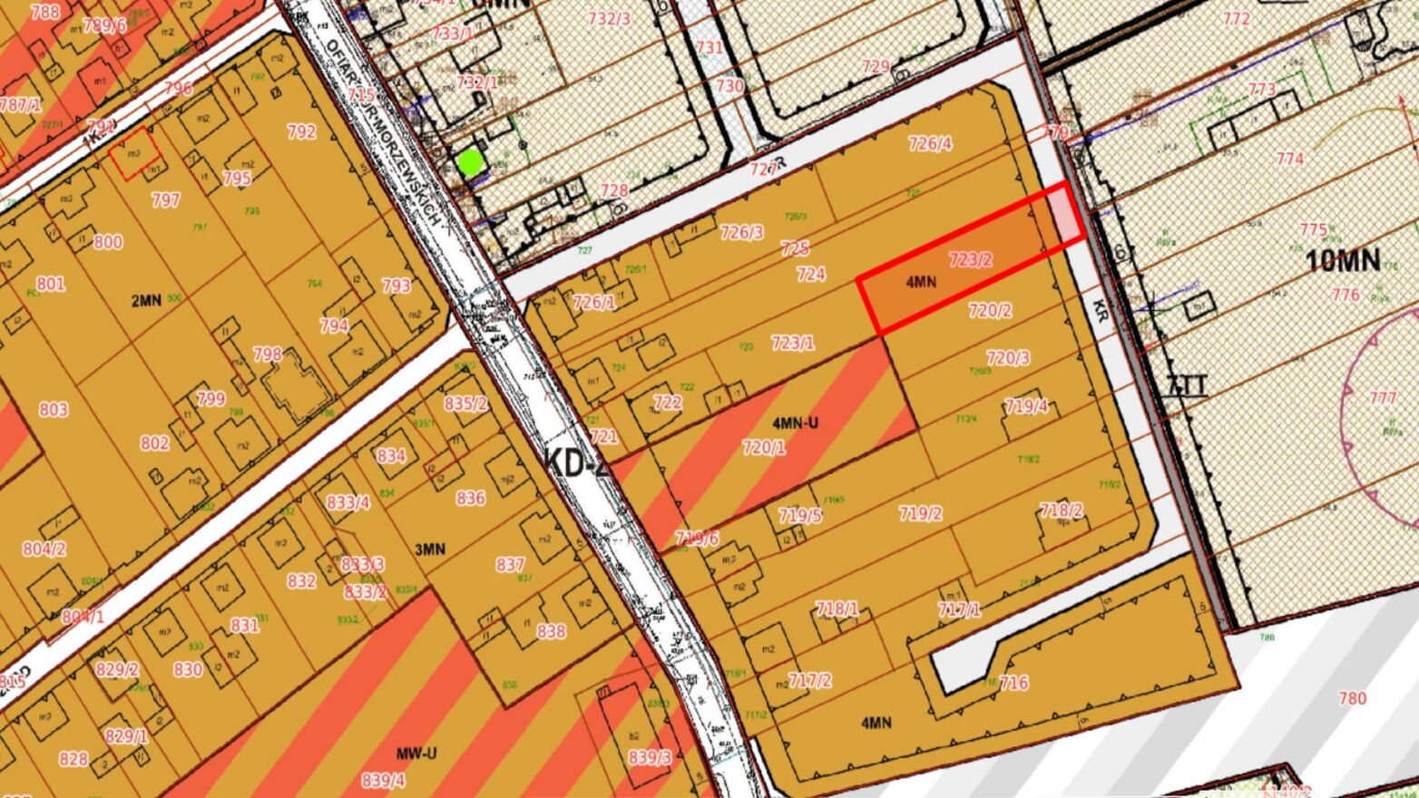 Wg. miejscowego planu zagospodarowania przestrzennego teren oznaczono symbolem 4 MN i przeznaczono pod zabudowę mieszkaniową jednorodzinną - budynek jednorodzinny wolnostojący.